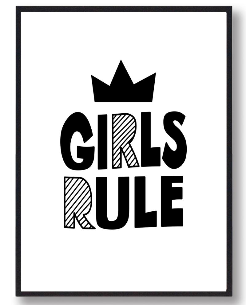 Girls Rule Plakat fra Plakatdyr.dk er det perfekte valg til børneværelset. Denne plakat med tekst tilføjer et personligt præg og inspirerer børnene.