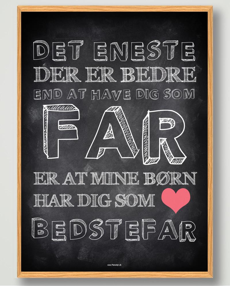 Gaven til fars dag Kast din kærlighed på alle de skønne fædre i dit liv med denne flotte far plakat i lækkert og stilfuldt design. Far plakaten findes i flere forskellige varianter alt efter. Hvem den er til. For du kan både bestille til farfar. Morfar.