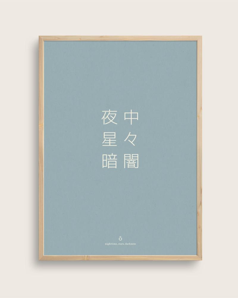 quotDøgnetquot-kollektionen er designet digitalt og består af tre japanske ord som hver især er sammensat af to tegn horisontalt. Ordene er synonymer for et bestemt tidsrum på dagen. Engelske oversættelser er skrevet i bunden af plakaten. Baggrund