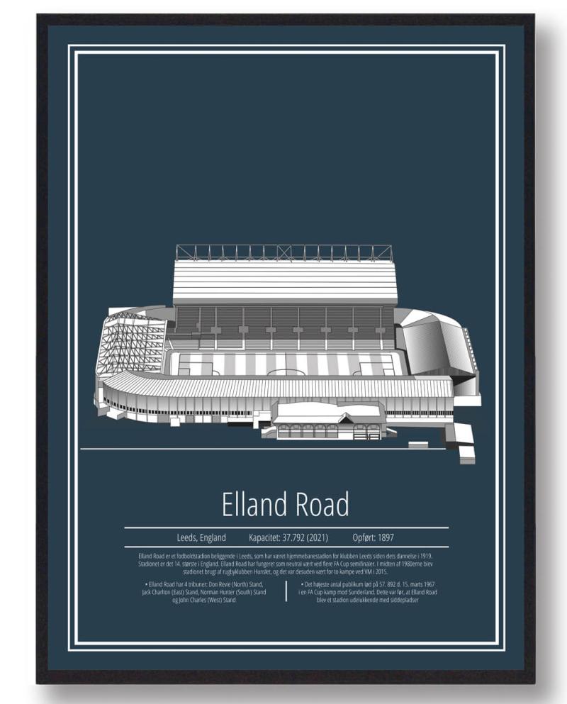 Vis verden At du er en ægte supporter af Leeds United med denne stilfulde plakat. Den vil helt sikkert være et samtaleemne blandt venner og familie. Gør dit hjem mere personligt med Elland Road plakaten.