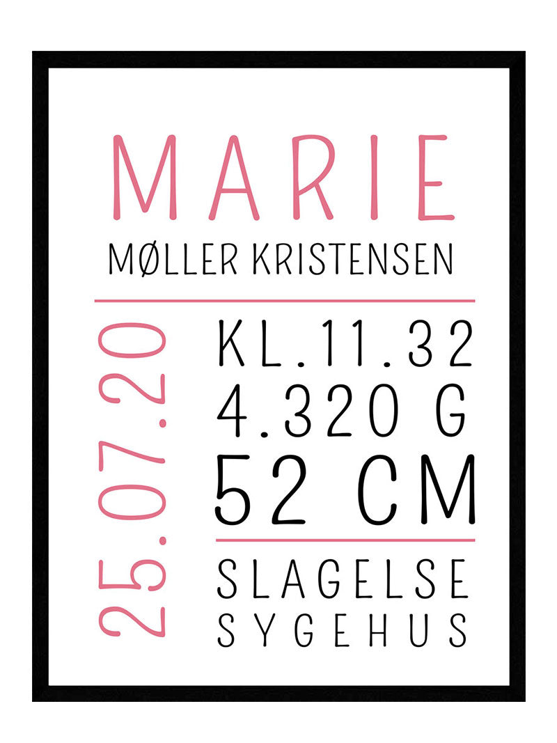 Fødselstavle tilpige Her er en sød fødselstavle til børneværelset. Denne plakat er den perfekte gave til dit eget barn eller også til en venvenindes nyfødte. Fødselstavlen er en god gave Så man kan huske hvor stor barnet var ved fødslen. Hvor meget