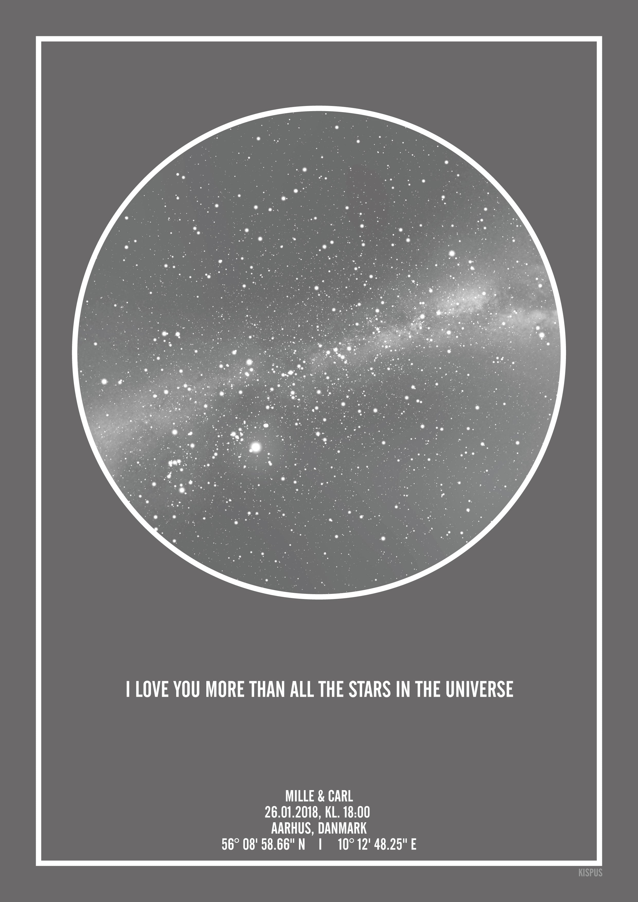 Produkt ID. Personlig-stjernehimmel-plakat-mrkegr-hvid-tekst-grå-himmel-mælkevej