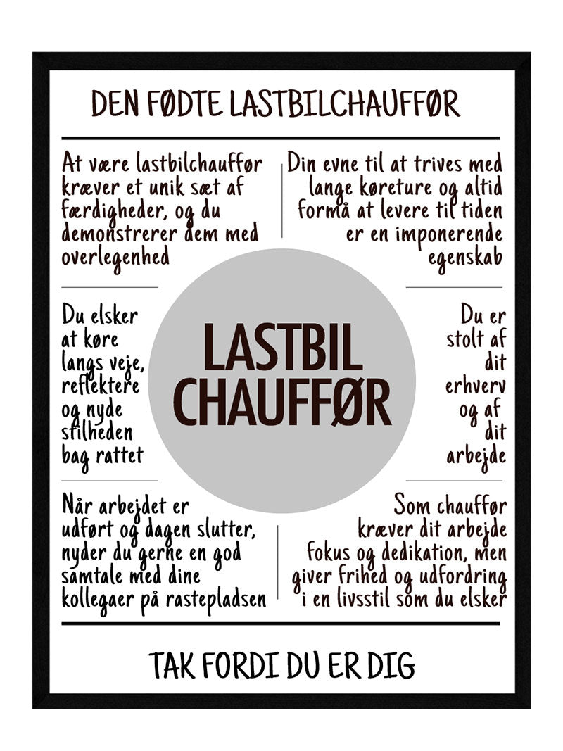 Lastbilchauffør plakat Kender du enlastbilchaufførder gør en forskel og fortjener, at få lidt anerkendelse, Så har vi den perfekte id, at give... Nemlig vores lastbilchaufførplakat Så kender du en lastbilchaufføreller blot en lastbilchauffør