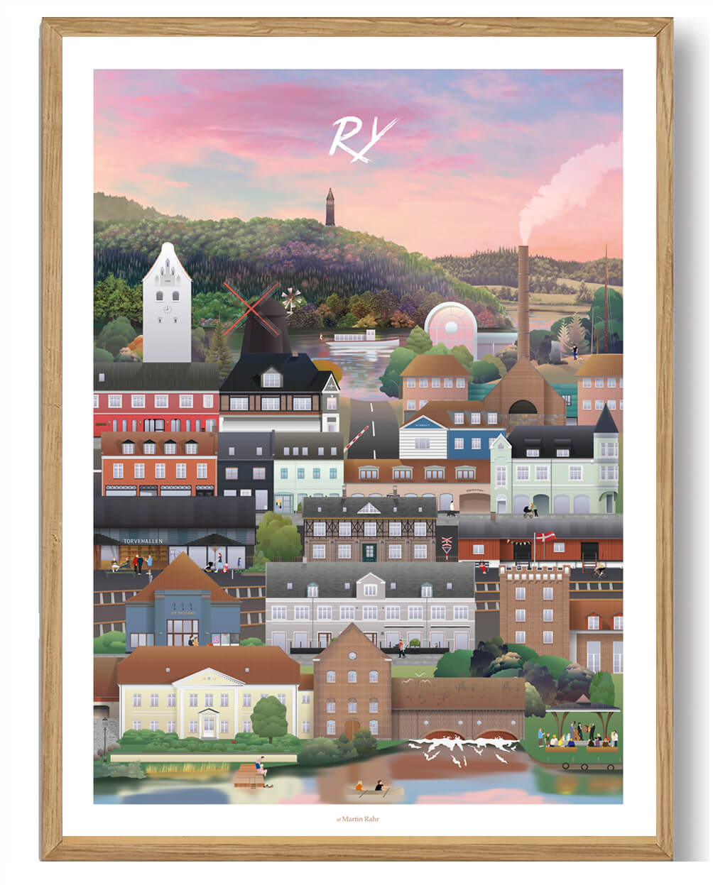 Ry plakat En elegant og grafisk hyldest til byen Ry. Plakaten er skabt af Martin Rahr og bringer stedets karakter ind i rummet. Motiv og stemning Motivet viser Ry med stiliseret grafik og afstemte farver. Linjerne er rene og strukturerede. Og stemninge
