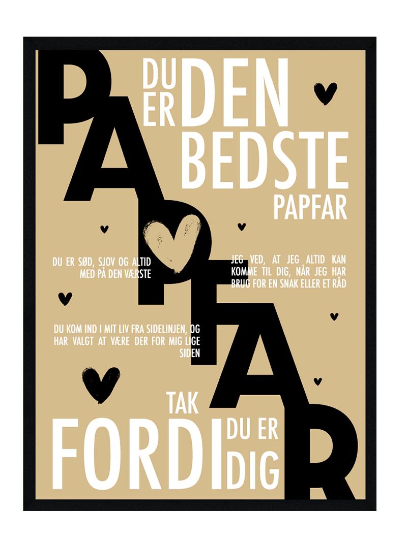 Papfar plakat Har du verdensbedste Papfar, Så er denne Papfar plakat den perfekte gave til ham. Den perfekte gave til verdens bedste Papfar. Synes du din Papfar fortjener lidt anerkendelse Men har du svært ved , at få sagt. Hvor meget han betyde