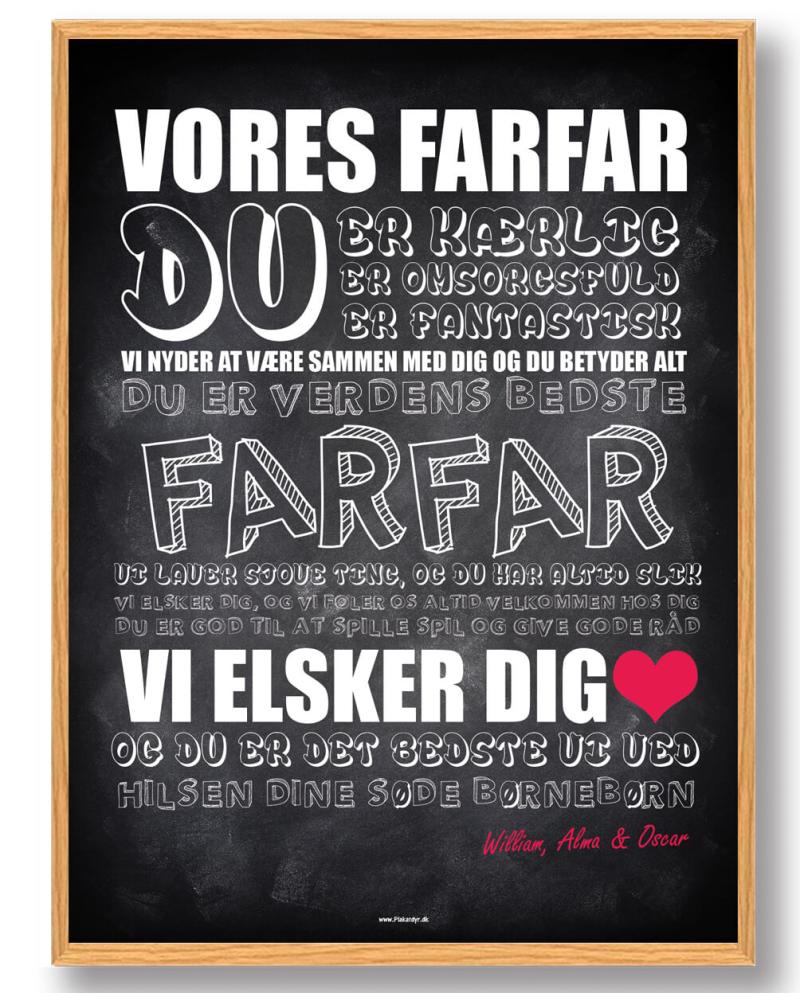 Giv din farfar en gave. Der viser hvor meget han betyder for dig. Med denne plakat får du ikke et stykke kunst Men også en kærkommen påmindelse om de gode minder og øjeblikke sammen.