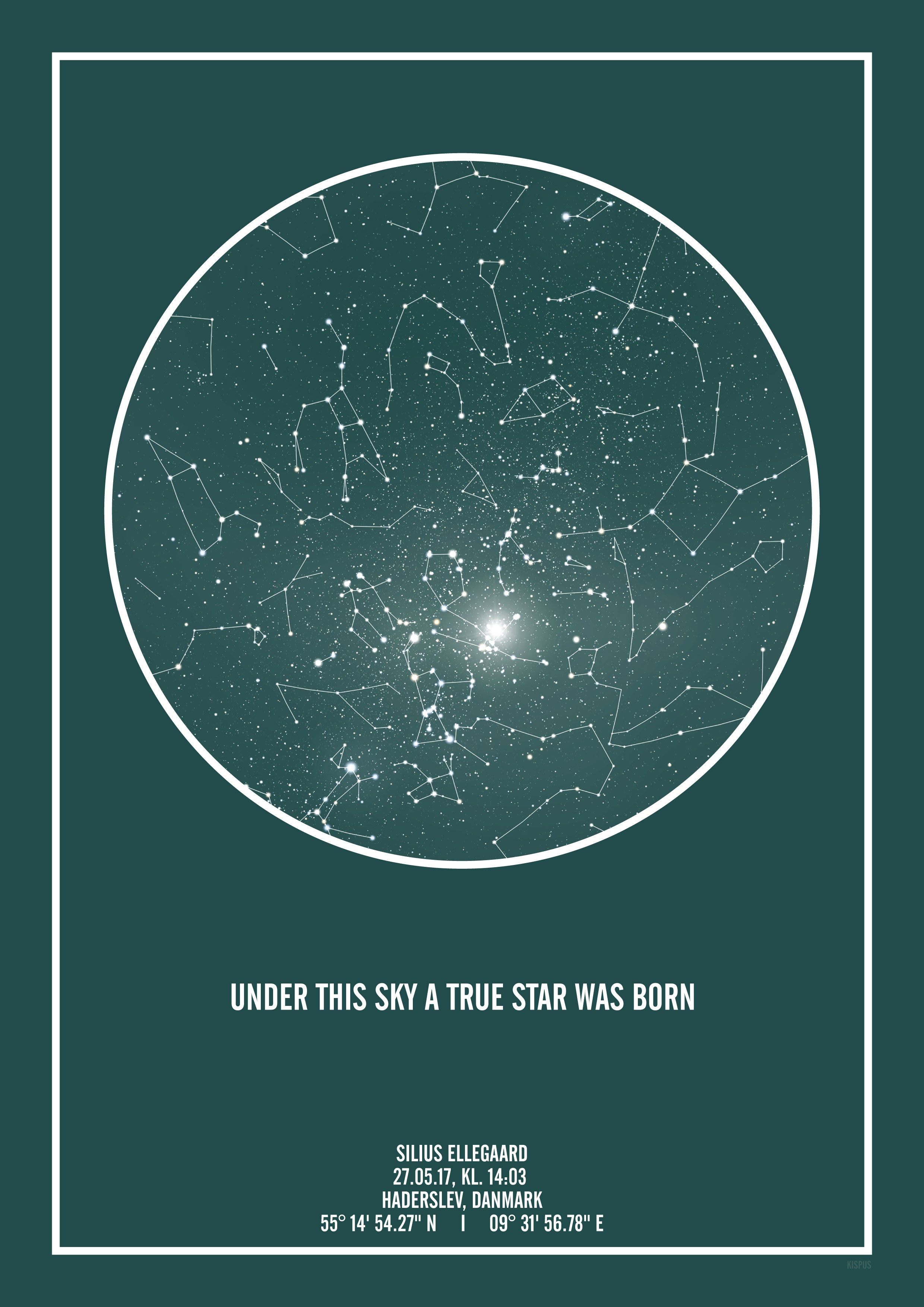 Yderlige produktinformationer. Produkt ID. Personlig-stjernehimmel-plakat-mrkegrn-stjernebilleder