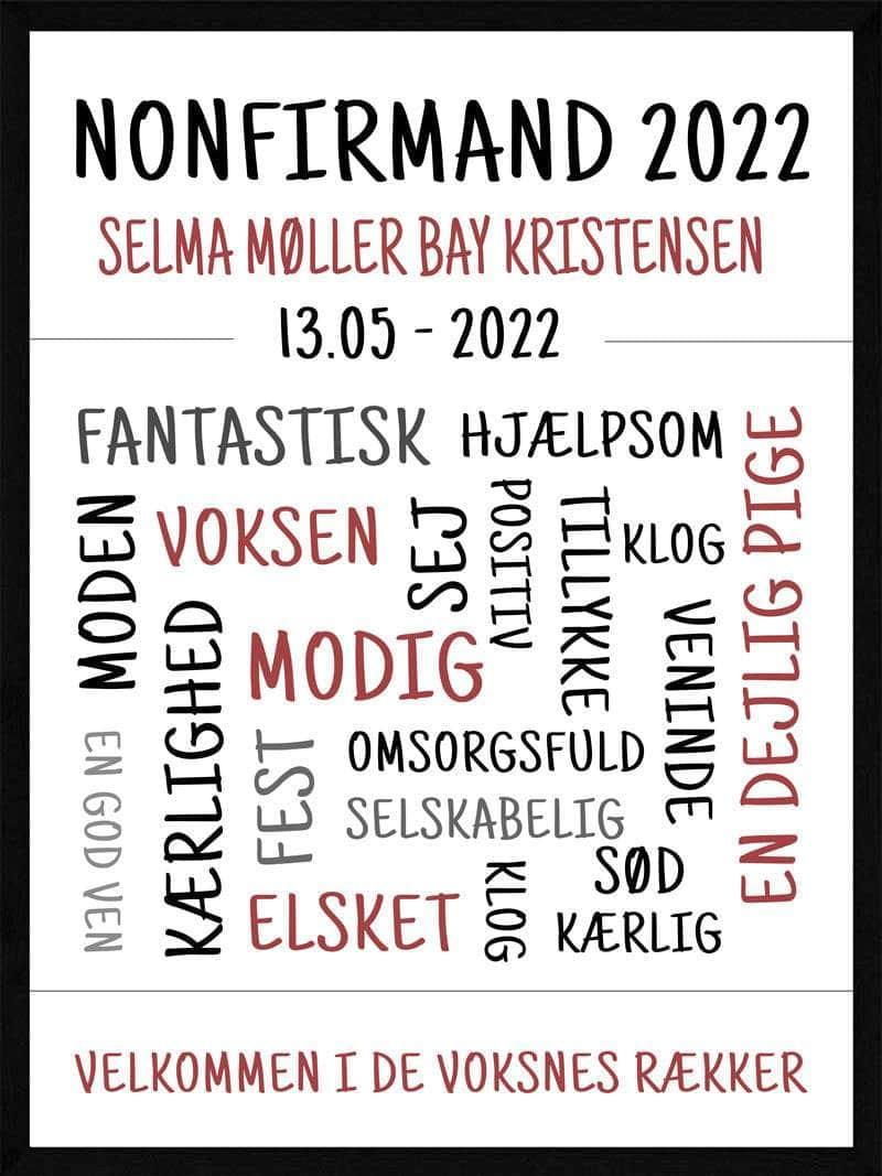 En perfekt gave til den unge. Der står over for nonfirmation. Denne plakat er designet til, at fejre denne store milepæl med stil og personlighed.