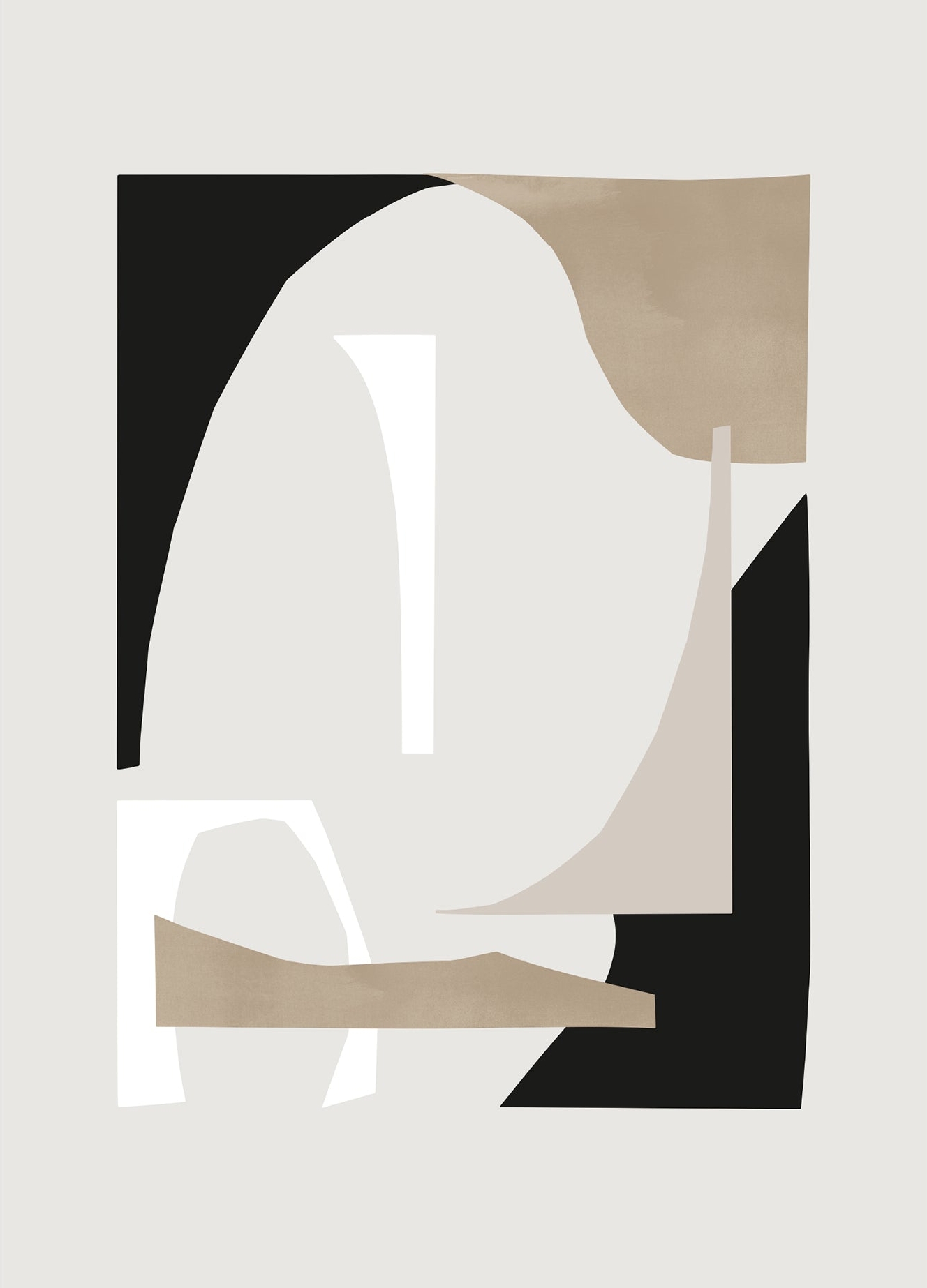 Abstrakt Mareike Bohmer plakat med motiv i sort. Beige og hvid Selvom motivet umiddelbart er abstrakt Så kan man ane et kvindeanset. Der gemmer sig i motivet