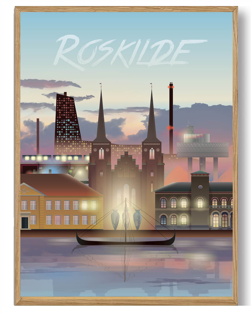 Roskilde plakat Denne plakat af kunstneren Martin Rahr hylder byen Roskilde med grafisk stil og byidentitet. Motivet bringer Roskilde ind i hjemmet med farver og form en dekorativ udsmykning med personlig tilknytning. Motiv og stemning Plakaten illust