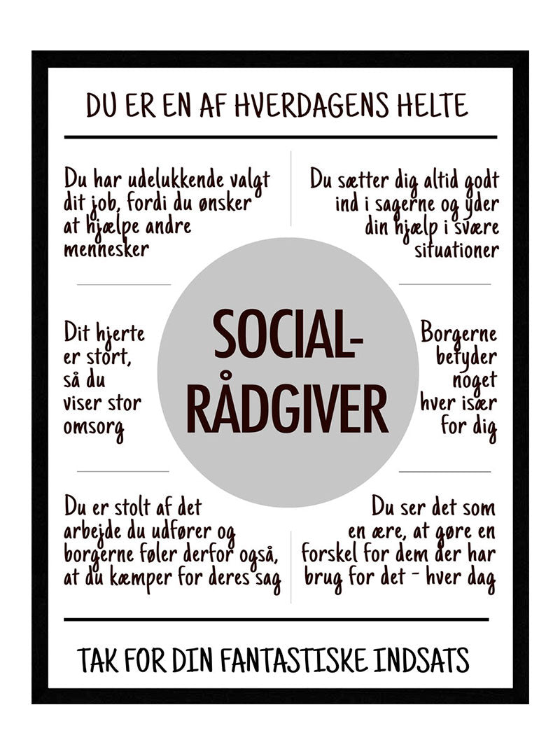 Socialradgiver plakat Kender du en socialradgiver der gør en forskel og fortjener, at få lidt anerkendelse, Så har vi den perfekte id, at give... Nemlig vores socialradgiver plakat Så kender du en socialradgiver eller også blot en socialradgiver der gø