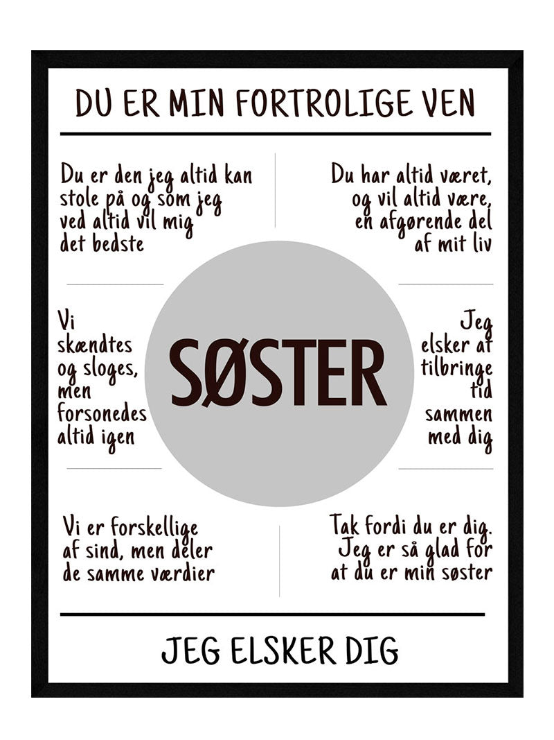 Søster plakat Har du verdensbedste søster, Så er denne søster plakat den perfekte gave til hende. Har du og din søster søstre et helt særligt bånd og vil du gerne fortælle hende. Hvor stor pris du sætter på jeres tætte forhold, Så erdenneplakat