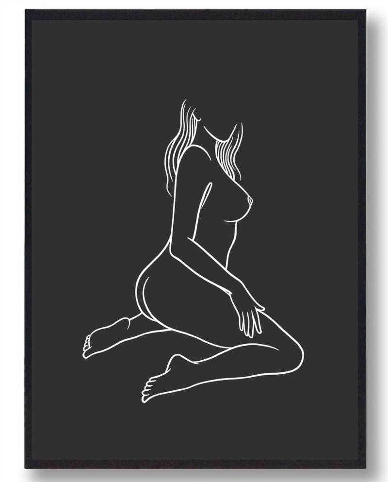 Stregtegning af kvinde Introducer din væg til en simpel og elegant dekoration med vores stregtegning af kvinde i sort. Denne plakat er perfekt til, at tilføje et strejf af minimalisme og stil til ethvert rum i dit hjem eller også kontor. Ligesom alle vores an