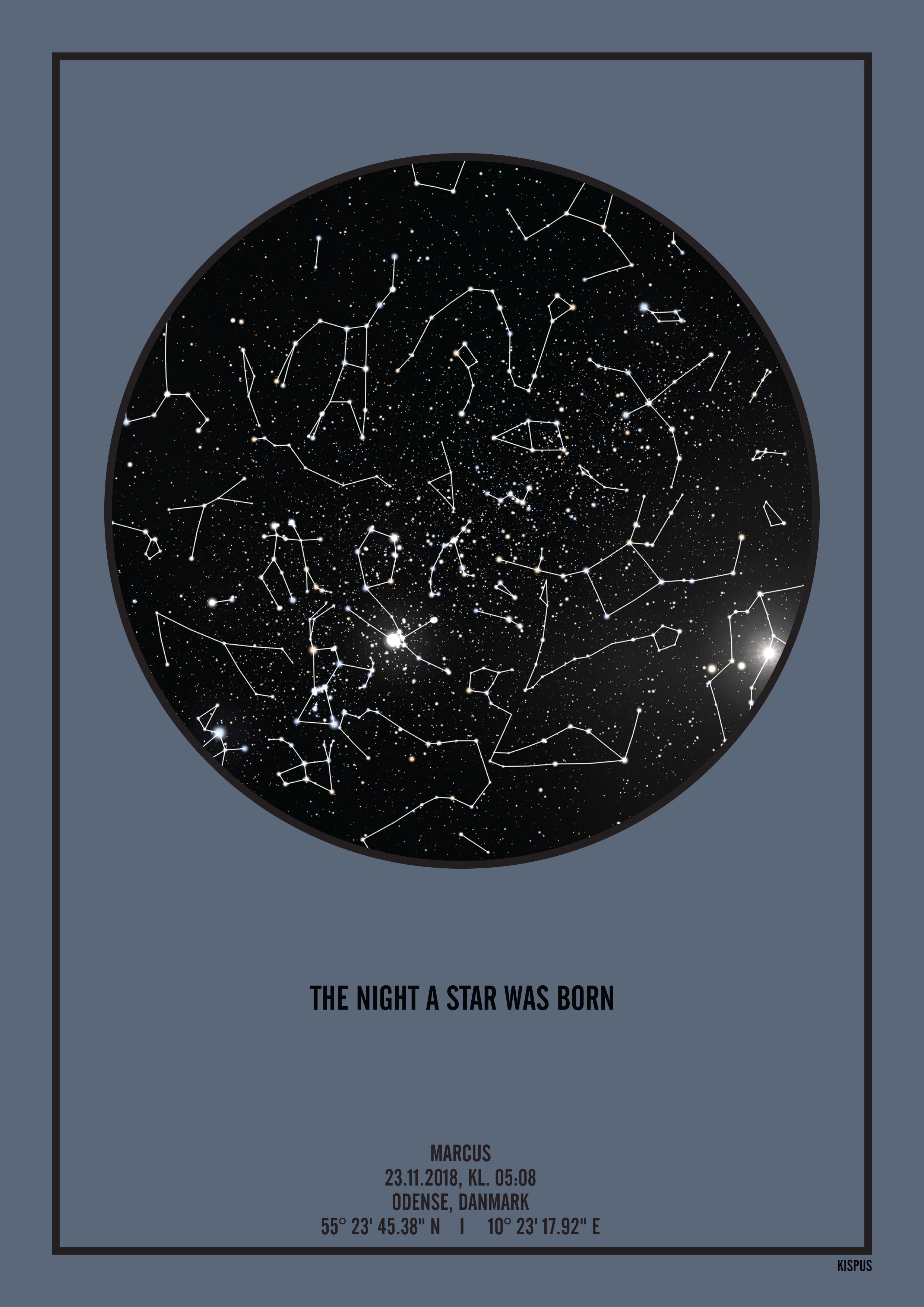 Produkt ID. Personlig-stjernehimmel-plakat-blgr-sort-tekst-sort-himmel-stjernehimmel-med-stjernebilleder