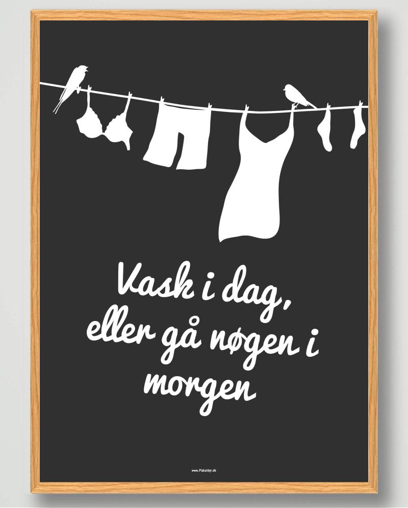 Vask i dag plakat til bryggers og vaskerum Denne plakat fra Plakatdyr kombinerer funktionalitet med humor og er ideel til dit bryggers. Vaskerum eller også badeværelse. Med teksten quotVask i dag. Eller gå nøgen i morgenquot minder den både praktisk og s